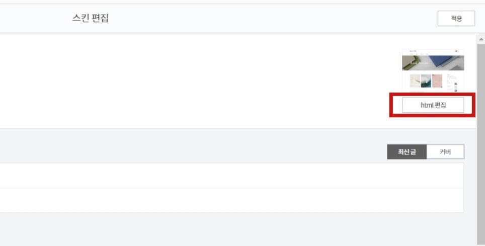 5. 티스토리 블로그의 설정 - '스킨 편집' 항목에서 html 편집 클릭.