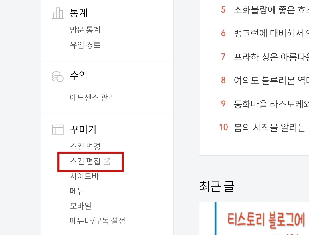 4. 애드센스에서 복사한 광고 코드 문구를 삽입하기 위해 티스토리 블로그로 이동.