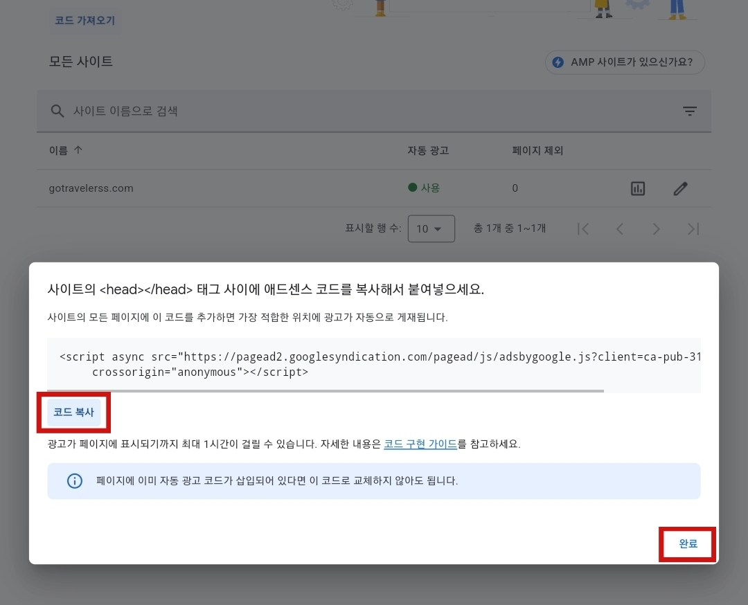 ※ 이 과정이 누락되면 애드센스 승인을 받더라도 블로그에 광고 노출이 되지 않습니다. 꼭 필요한 과정이니 차근차근 잘 따라 해 보세요!