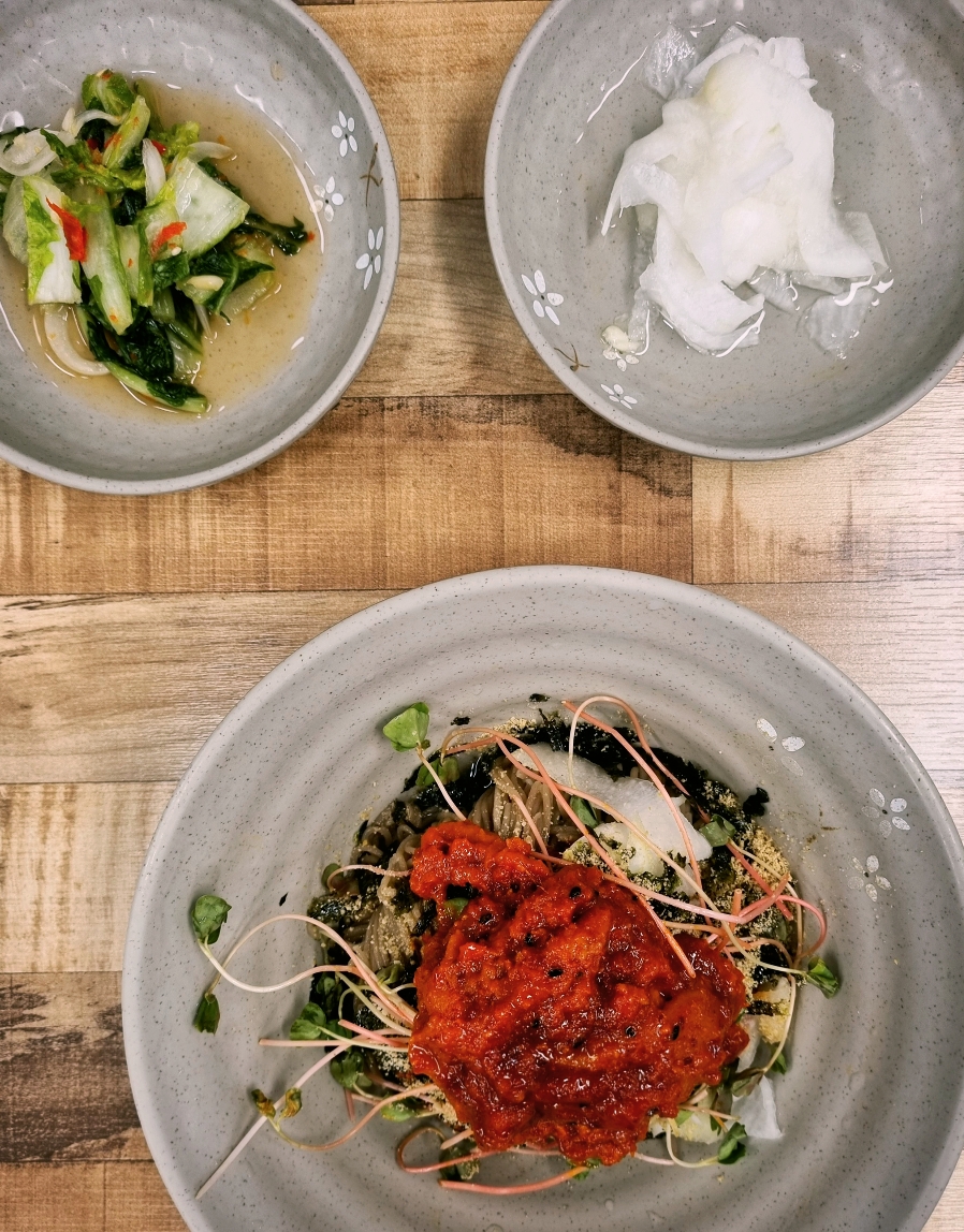 기본 반찬으로는 무 절임과 열무김치가 나와요.