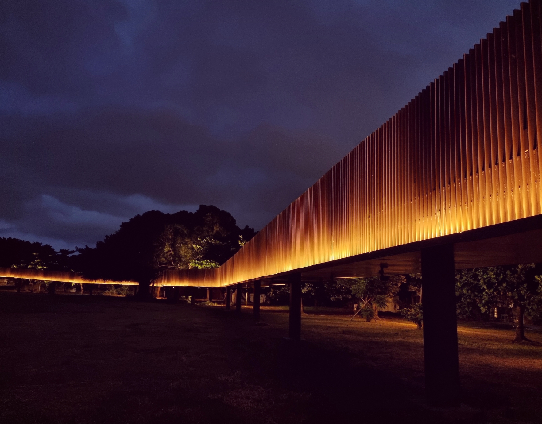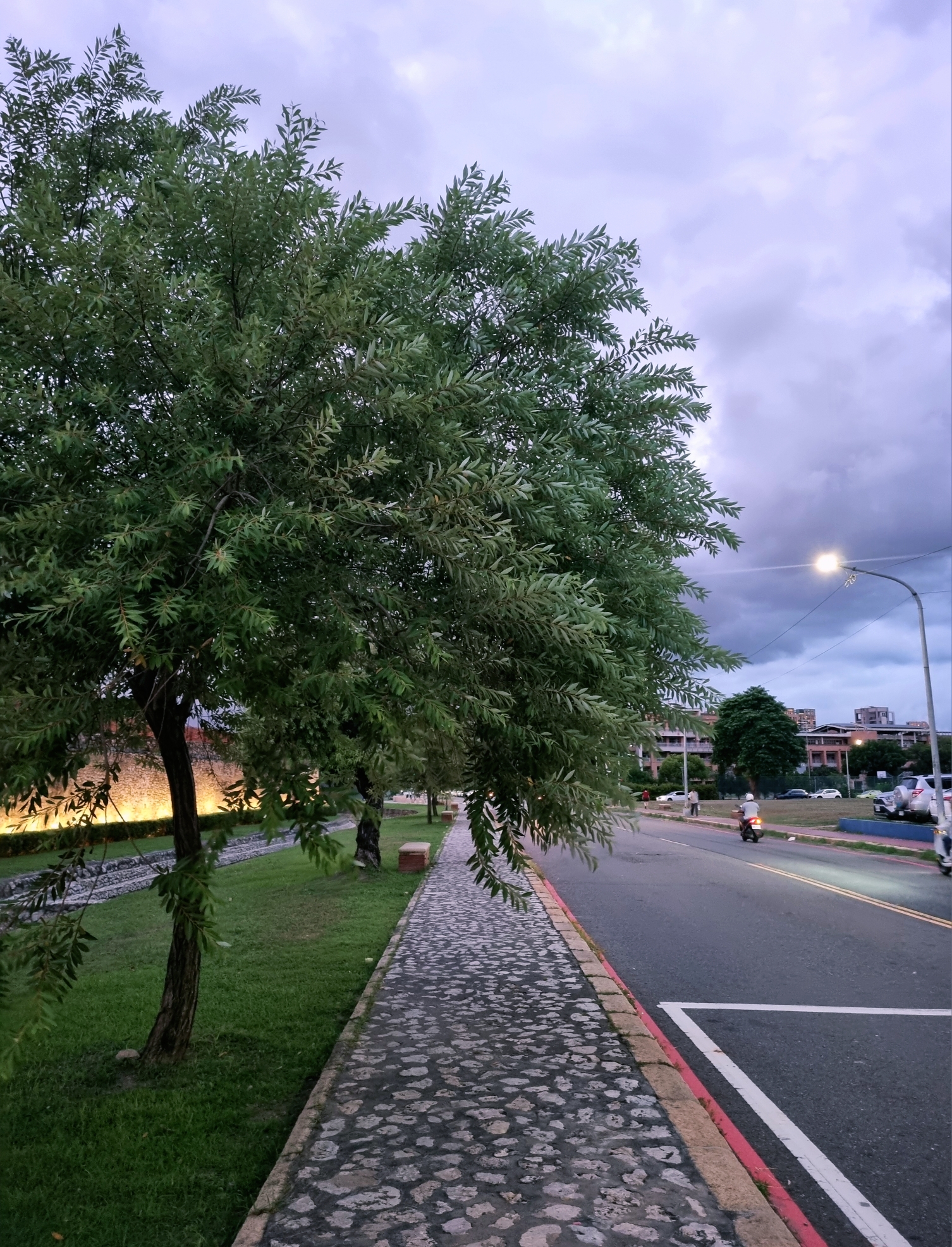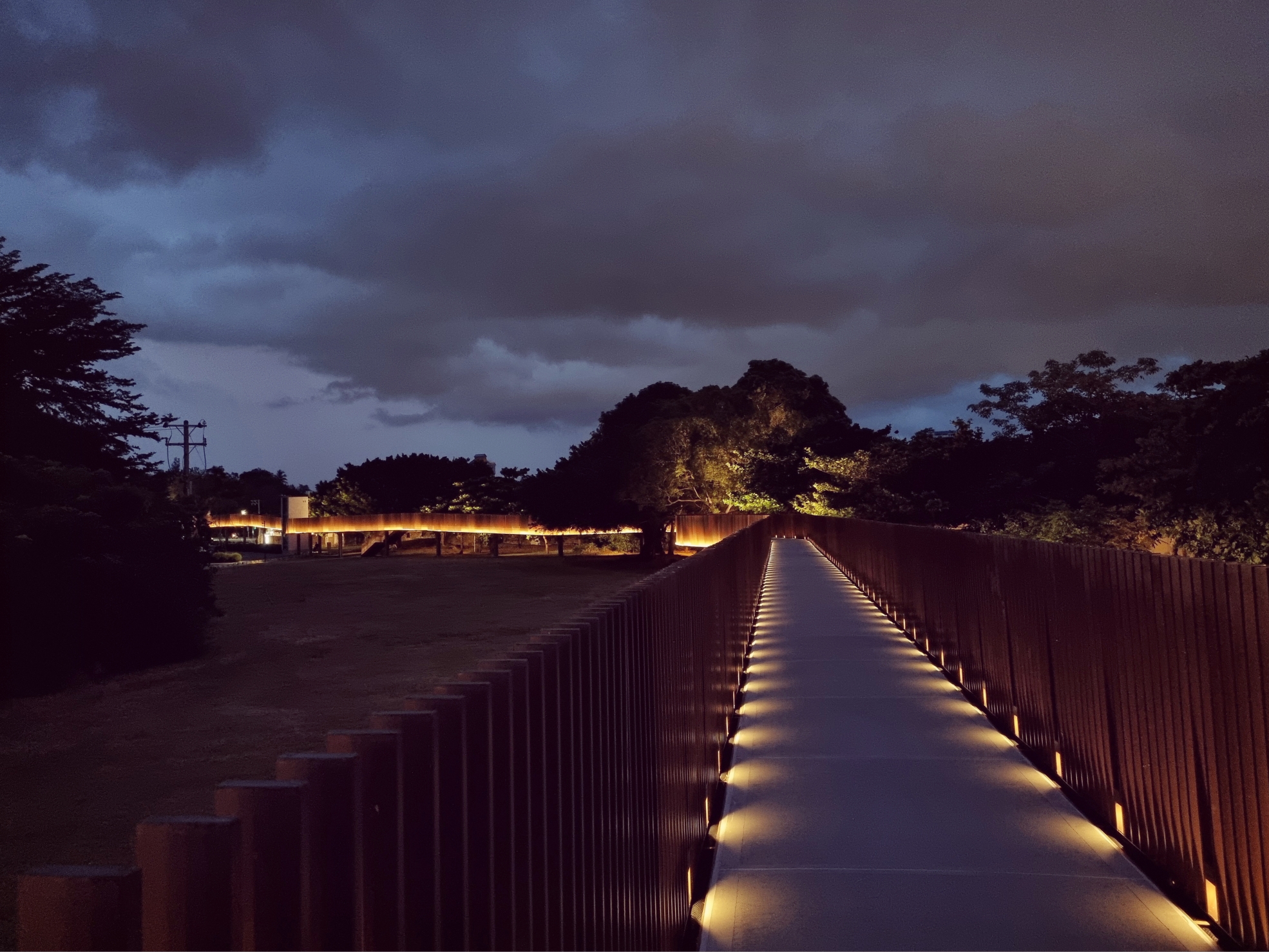 조명 켜진 어둑한 밤에 그 길을 따라