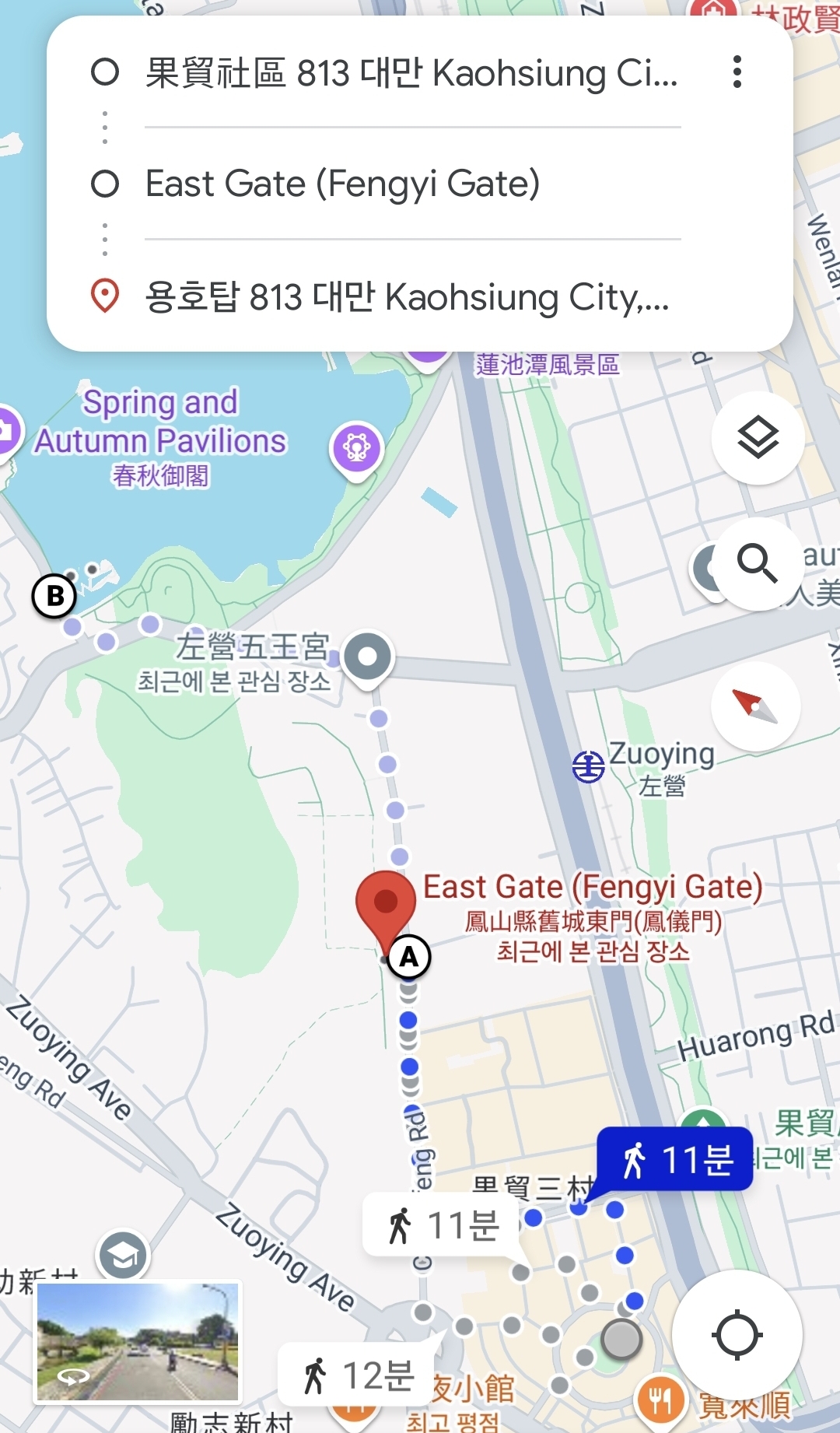 용호탑까지 걸어서 찾아간 루트예요.