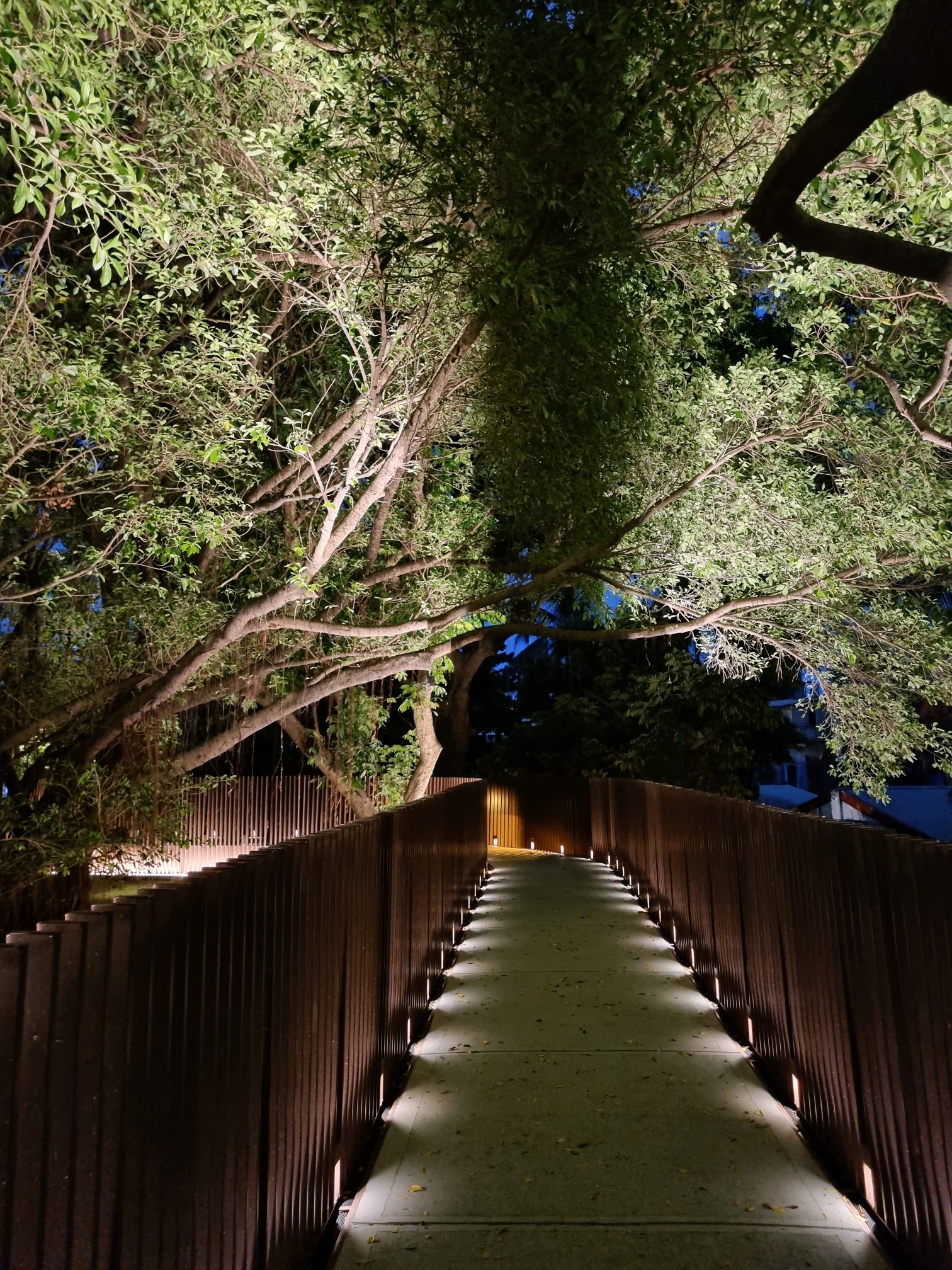 조명 켜진 어둑한 밤에 그 길을 따라
