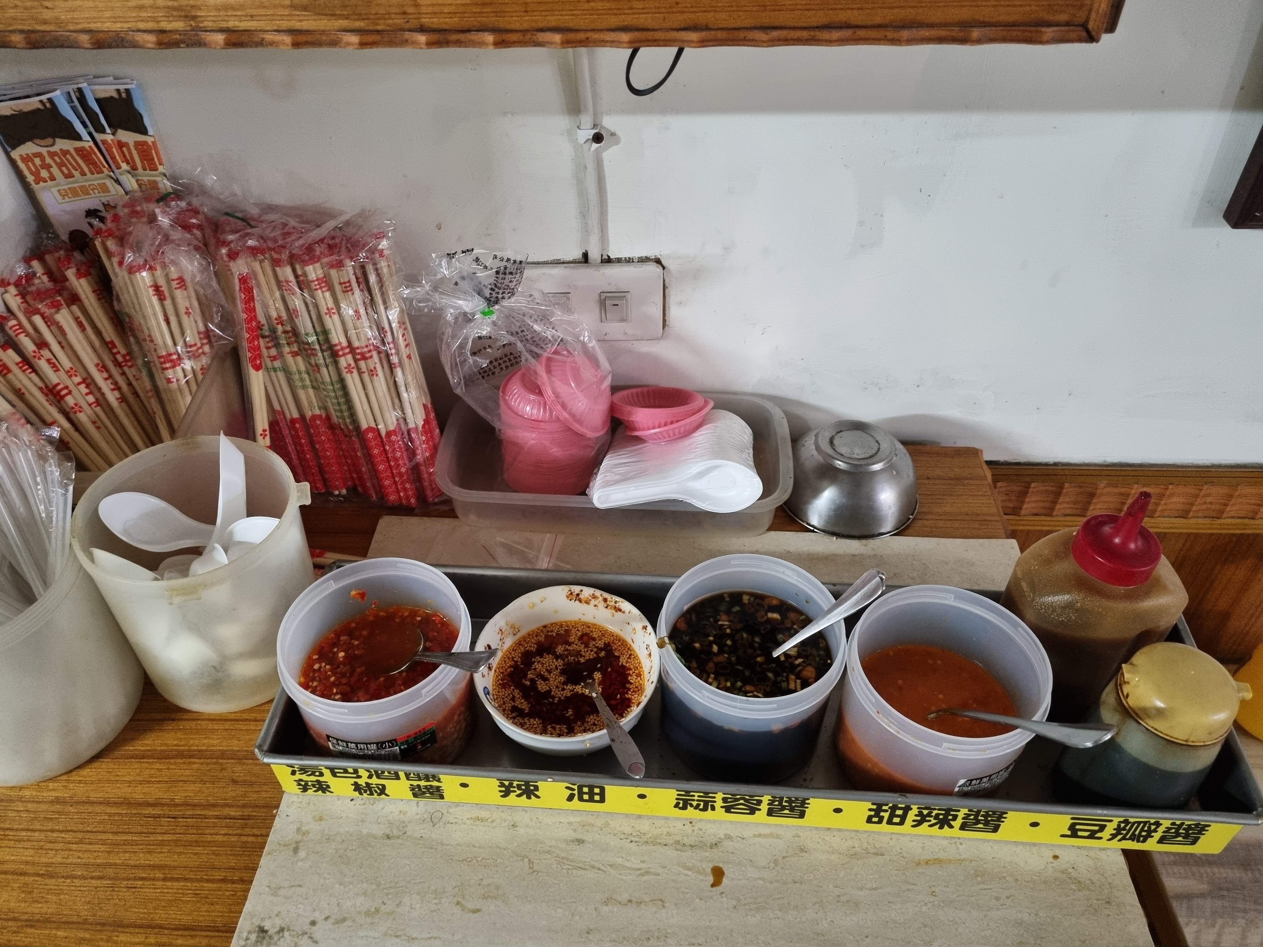 양념 소스들을 챙겨서 자리에 앉았어요.