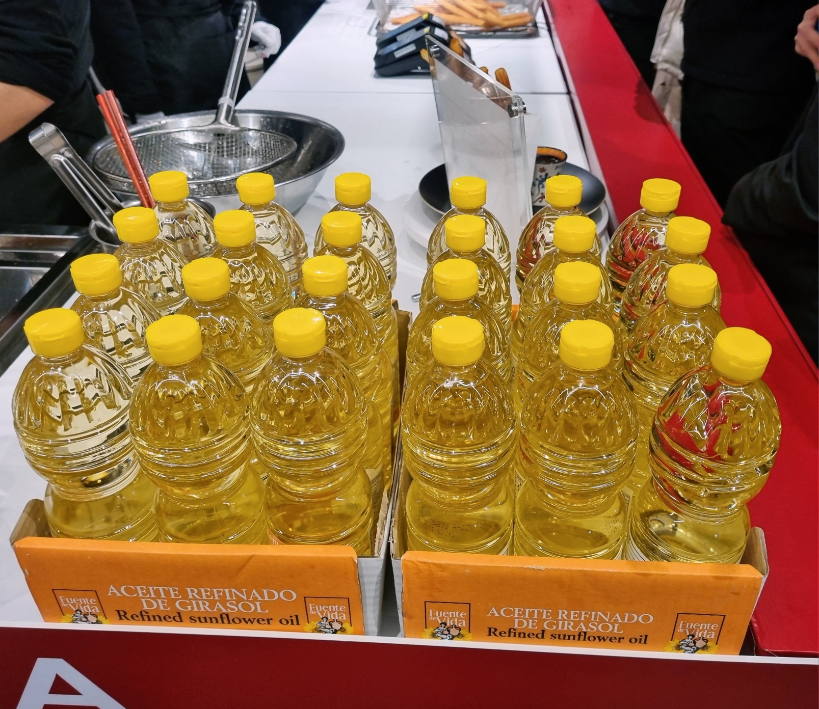 이 기름이 진열되어 있던데 해바라기 오일로 츄로스를 튀기나 봐요.