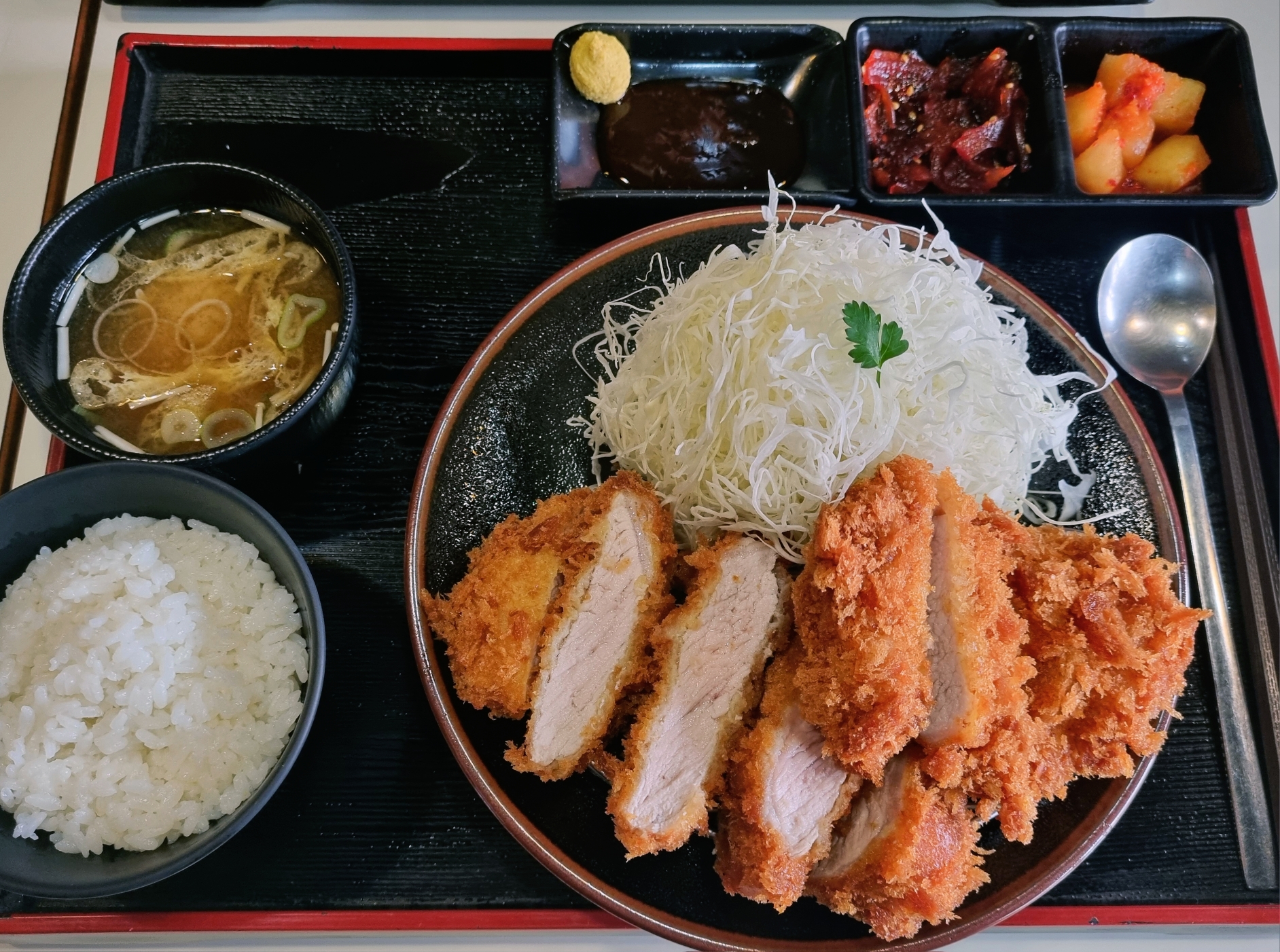 돈카츠 먹고 나면 항상 부족함이 느껴져서 아쉬웠는데, 모모야에서 점보사이즈로 먹으니 배가 터질 것 같았어요.
