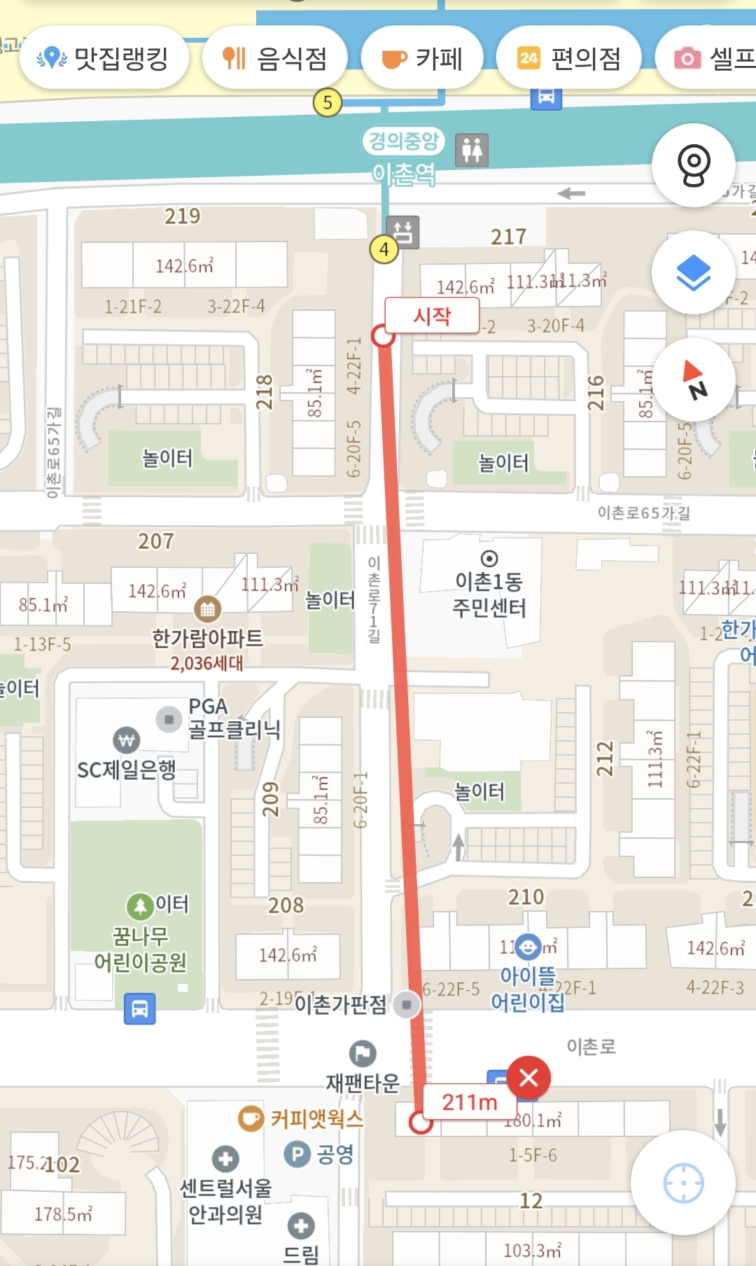 이촌역 4번 출구에서 직선거리로 300m가 채 되지 않는 매우 가까운 거리에 있어요.