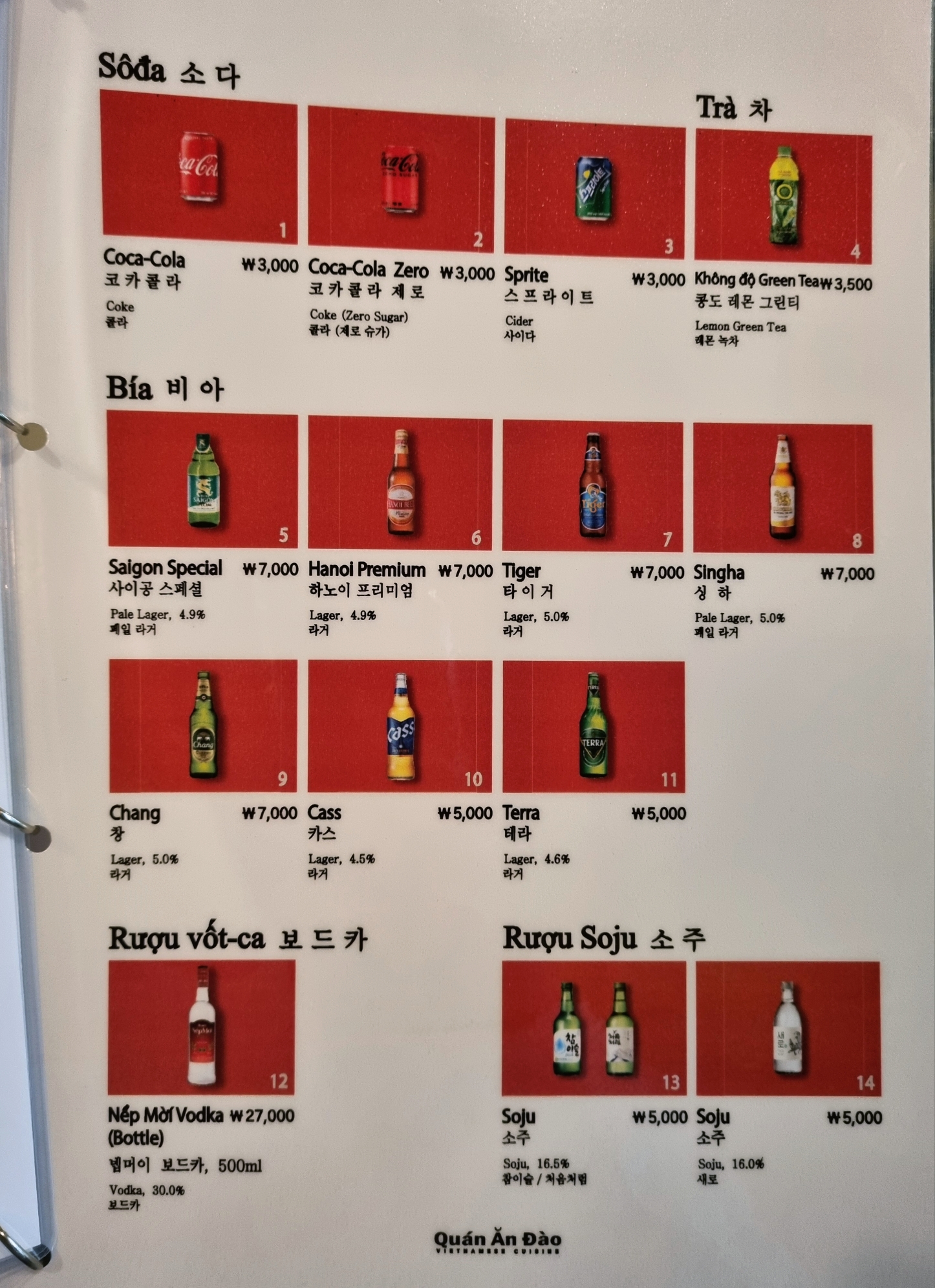 이제 본격적으로 콴 안다오의 메뉴를 살펴보시죠.