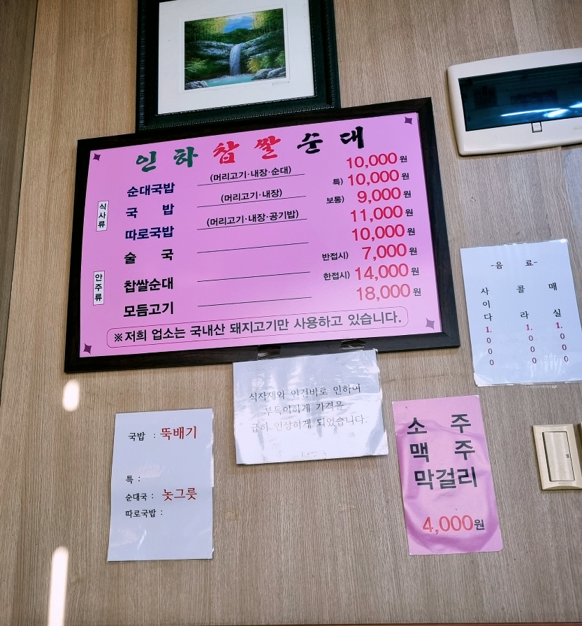 토렴 한 국밥은 국물이 탁해서 따로국밥을 선호하는 편인데, 인하찹쌀 순댓국은 토렴이 정말 잘 돼서 국물이 탁하거나 하지 않았어요.