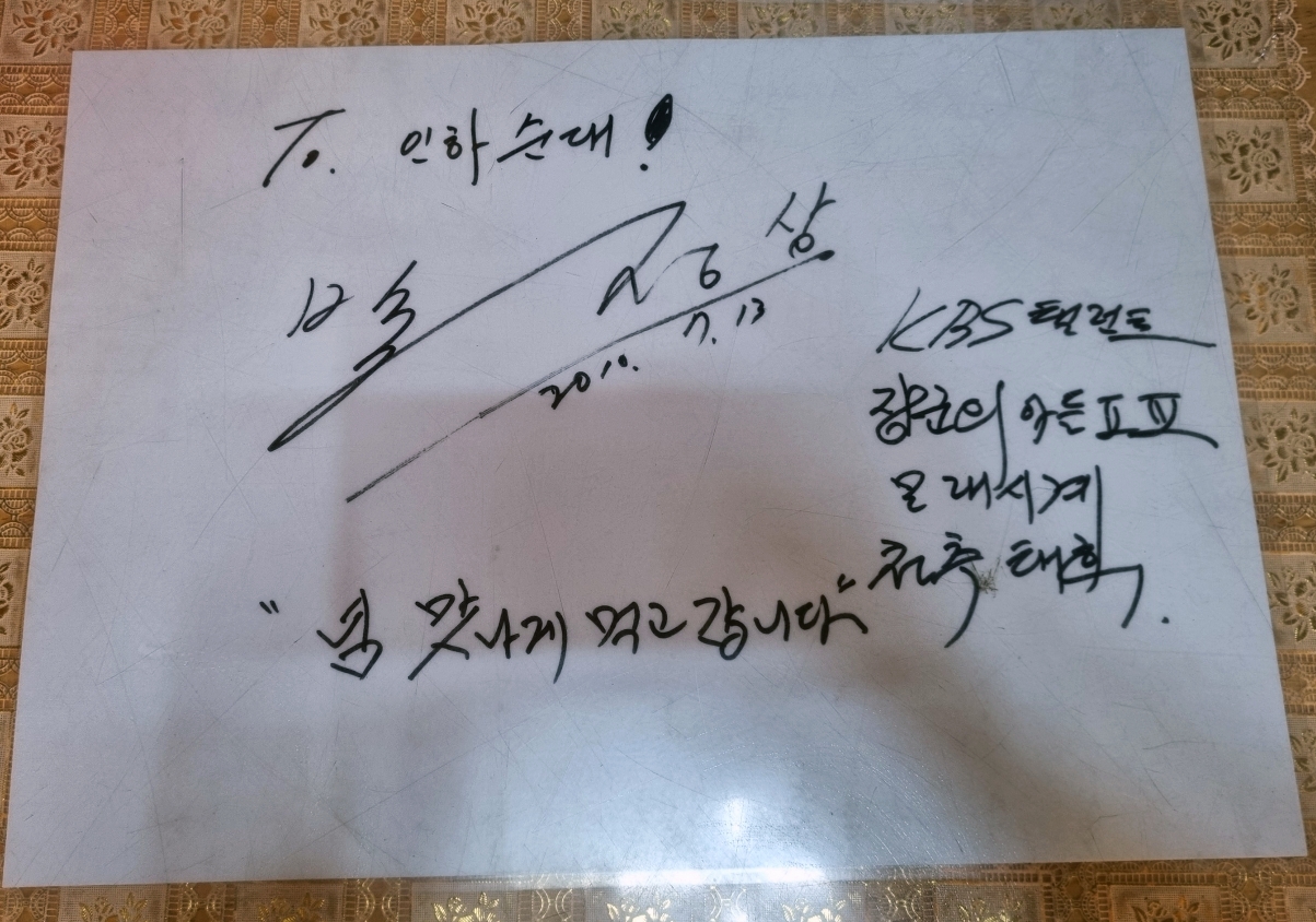 제가 앉았던 테이블에 있던 싸인인데 이름을 너무 갈겨쓰셔서 누구 싸인인지 모르겠네요.