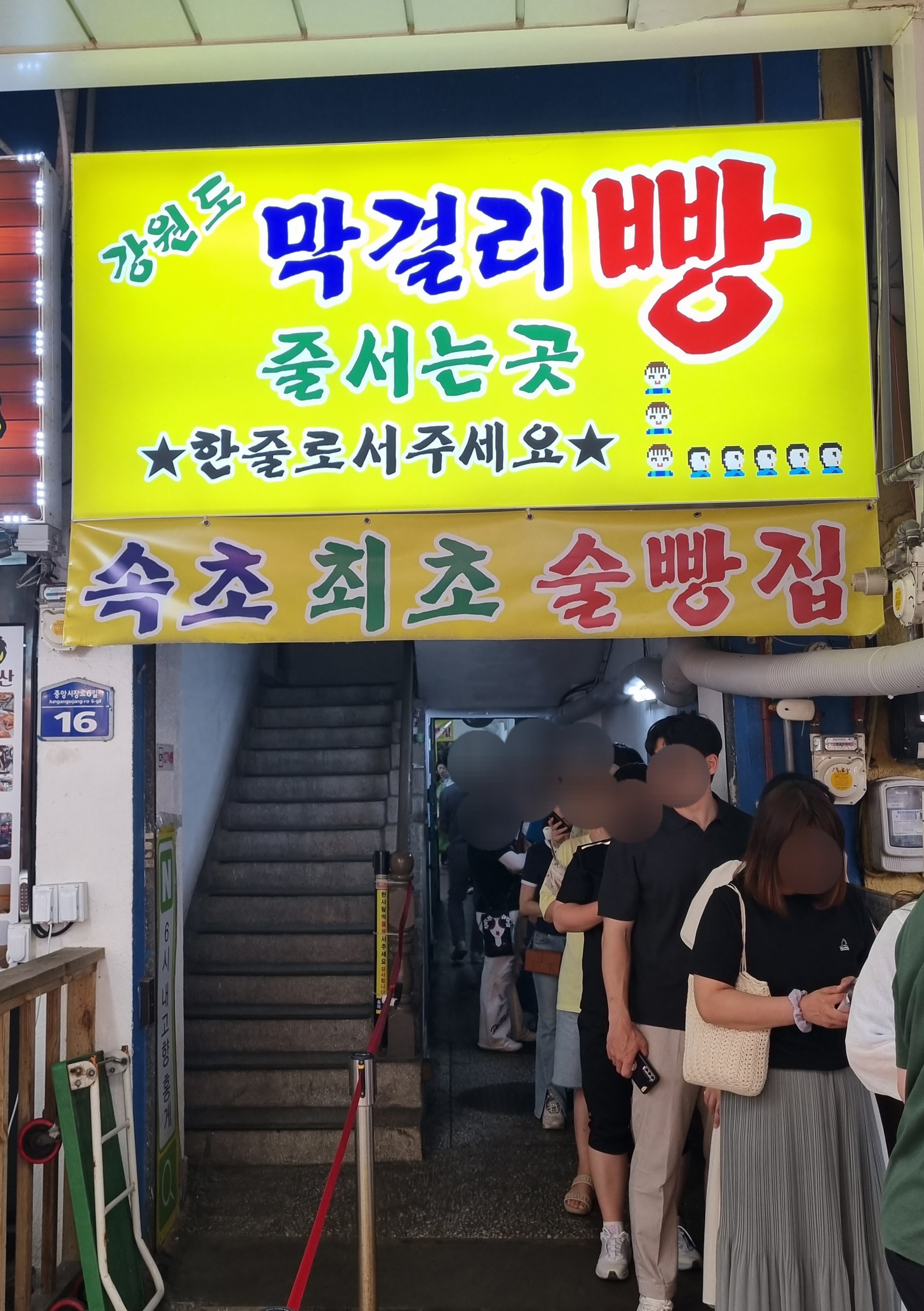 사람 많은 중앙시장에서도 유독 더 많은 사람들이 줄 선 곳이 바로 달인 막걸리빵집이에요.