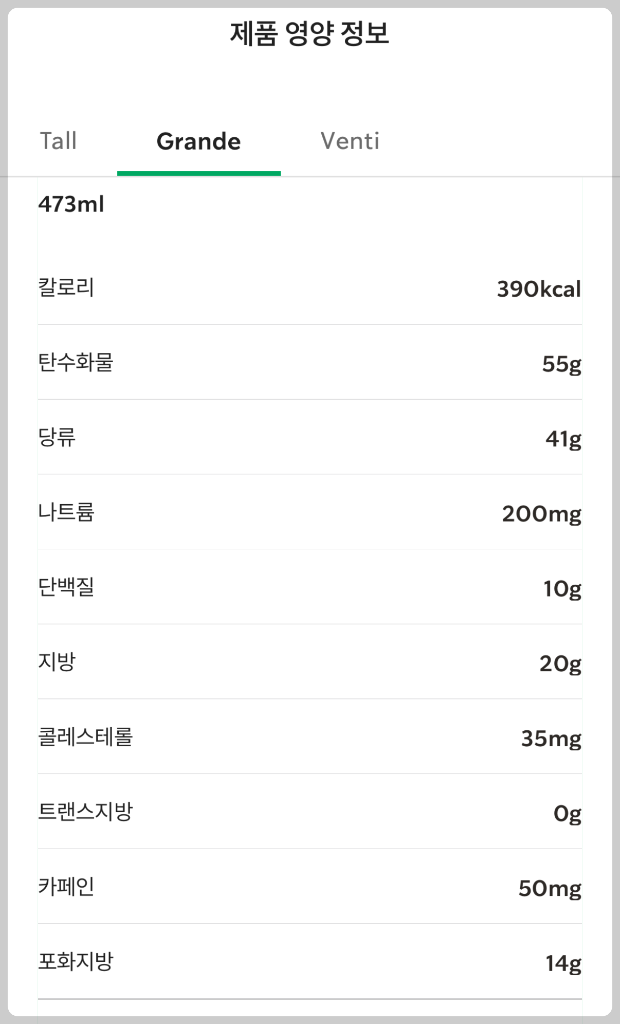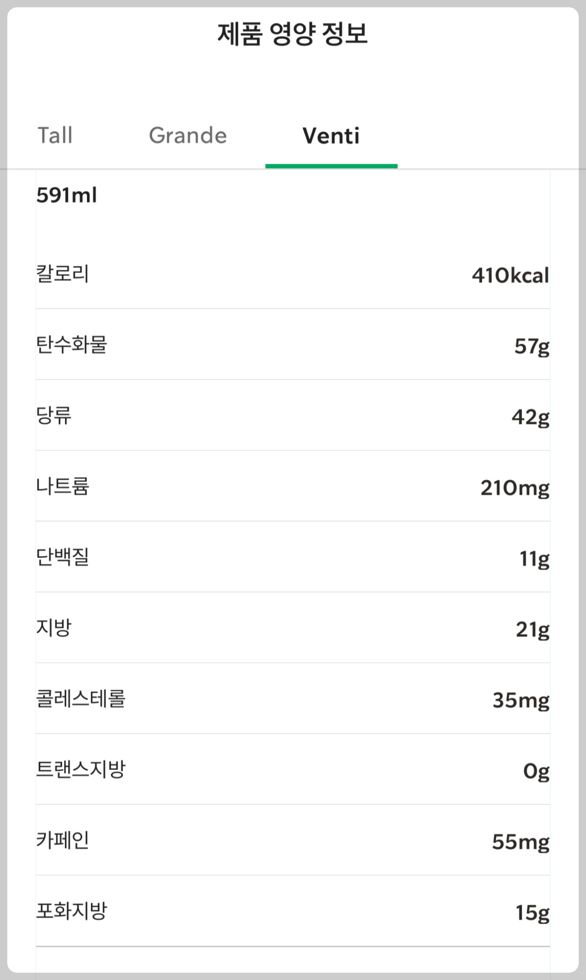그란데 사이즈로 넘어가니 칼로리가 부담스럽네요.