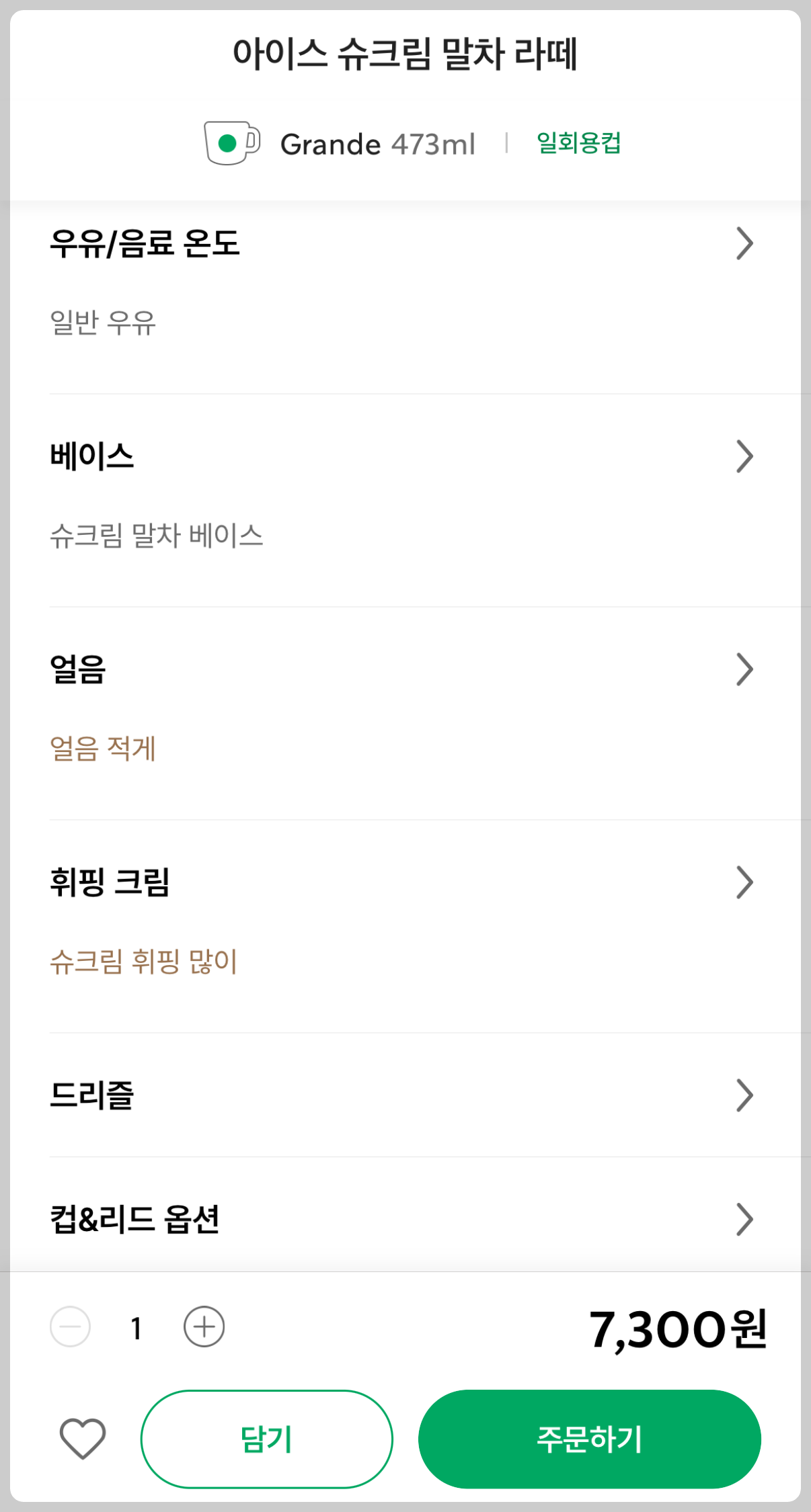 그란데 사이즈로 업하게 되면 7,300원으로 가격이 800원이나 껑충 뜁니다.