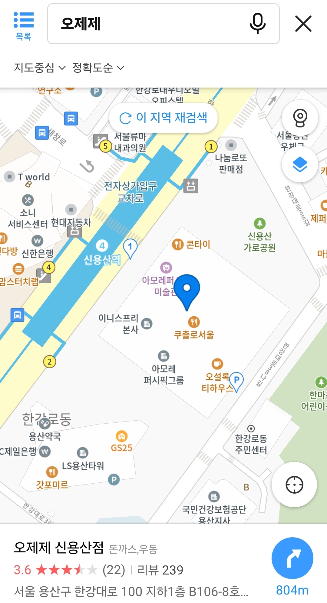 오제제 신용산점은 4호선 신용산역 바로 앞에 있는