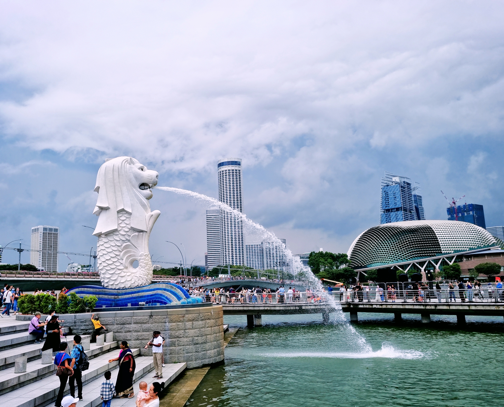 독특한 형태의 동상의 입에서 물을 뿜는 장면을 기념사진으로 남기려고 여행자들이 줄지어 찾는 싱가포르의 대표 관광지예요.