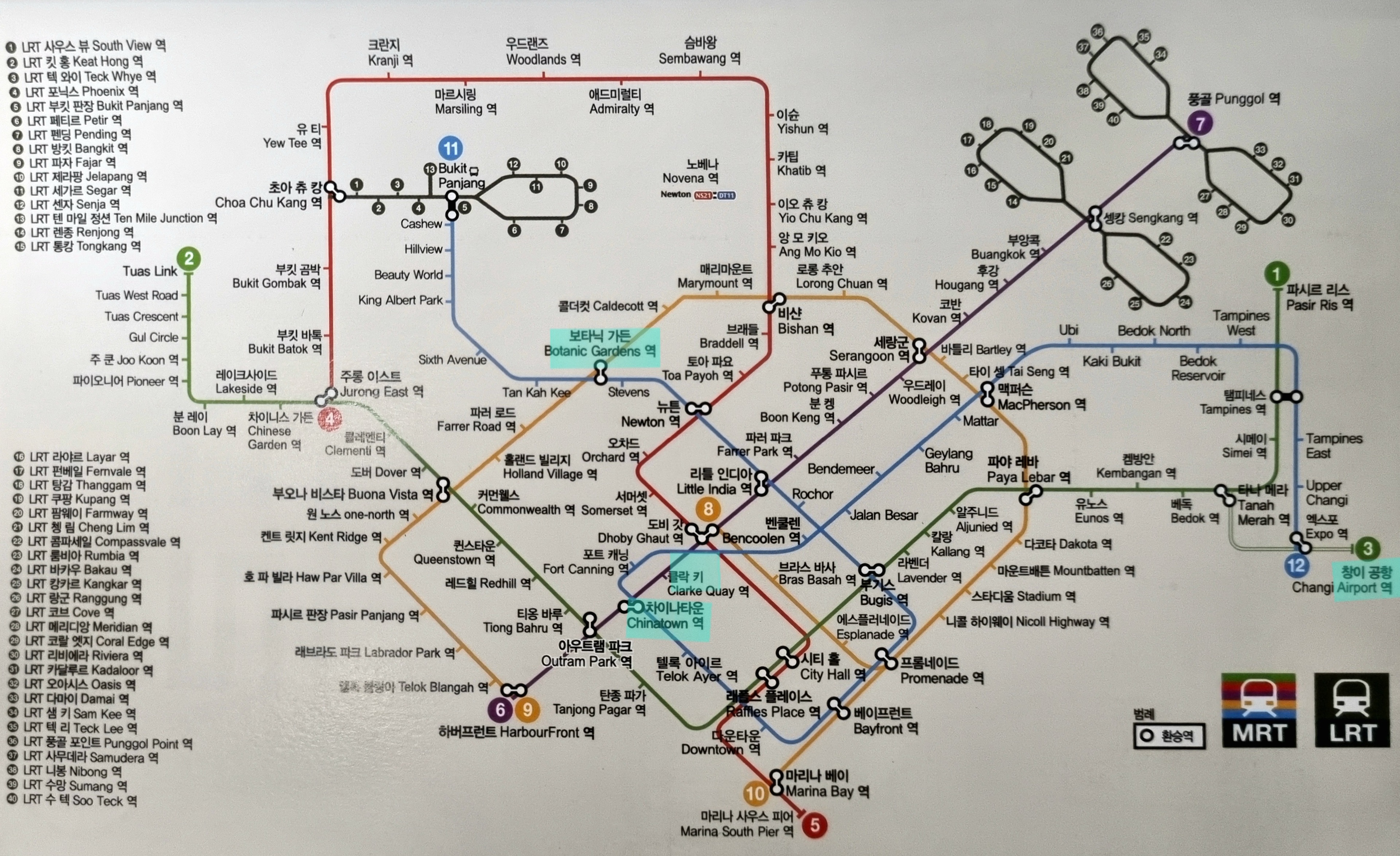 창이 공항에서 도심으로 이동할 때나 주요 관광 명소들로 이동 시 노선도 하나만 있으면 해외에서 타는 지하철이라도 두려울 건 없겠죠?
