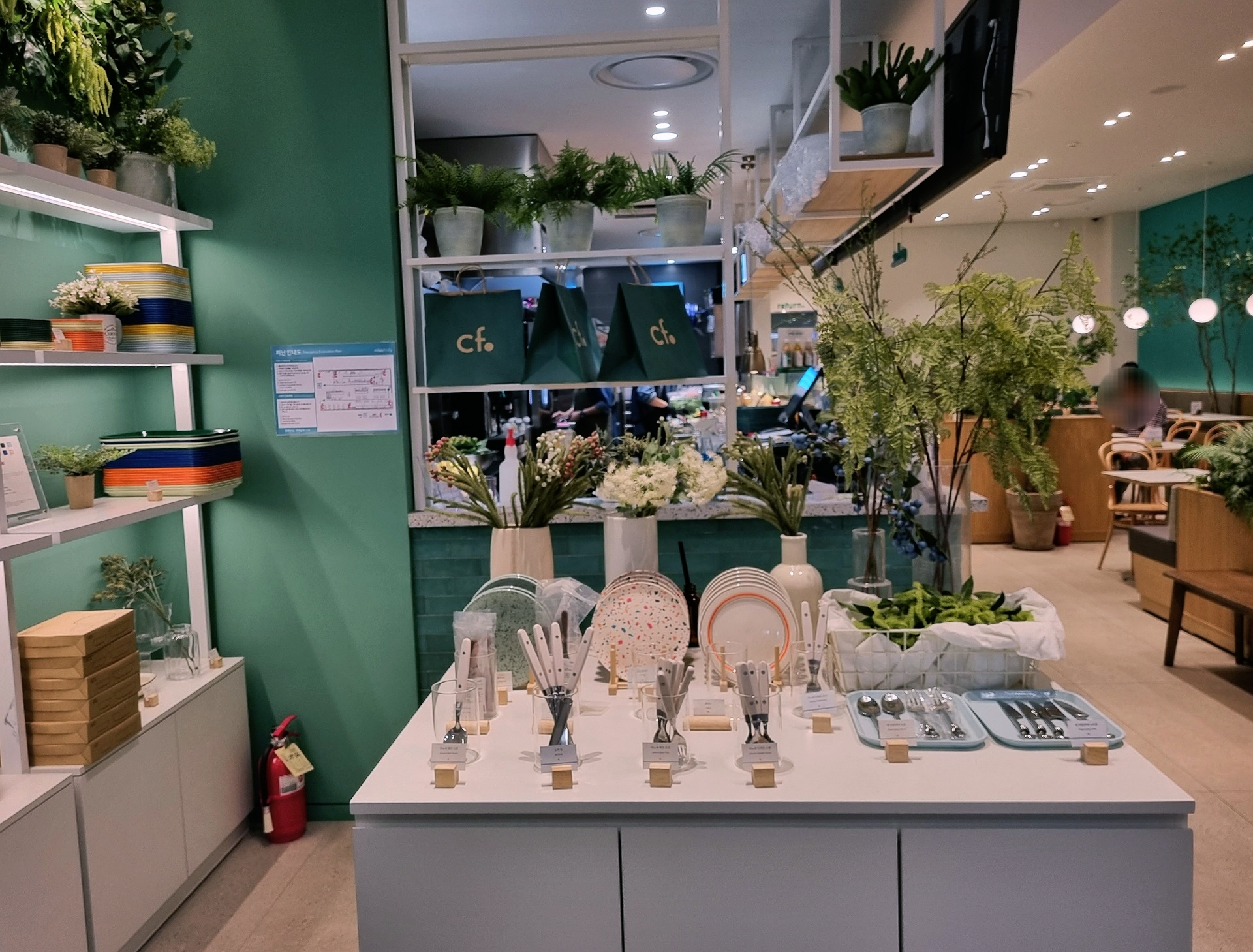 매장 입구에는 샐러드에 어울리는 집기들과 숟가락, 포크 등 집기들도 진열되어 있어요.