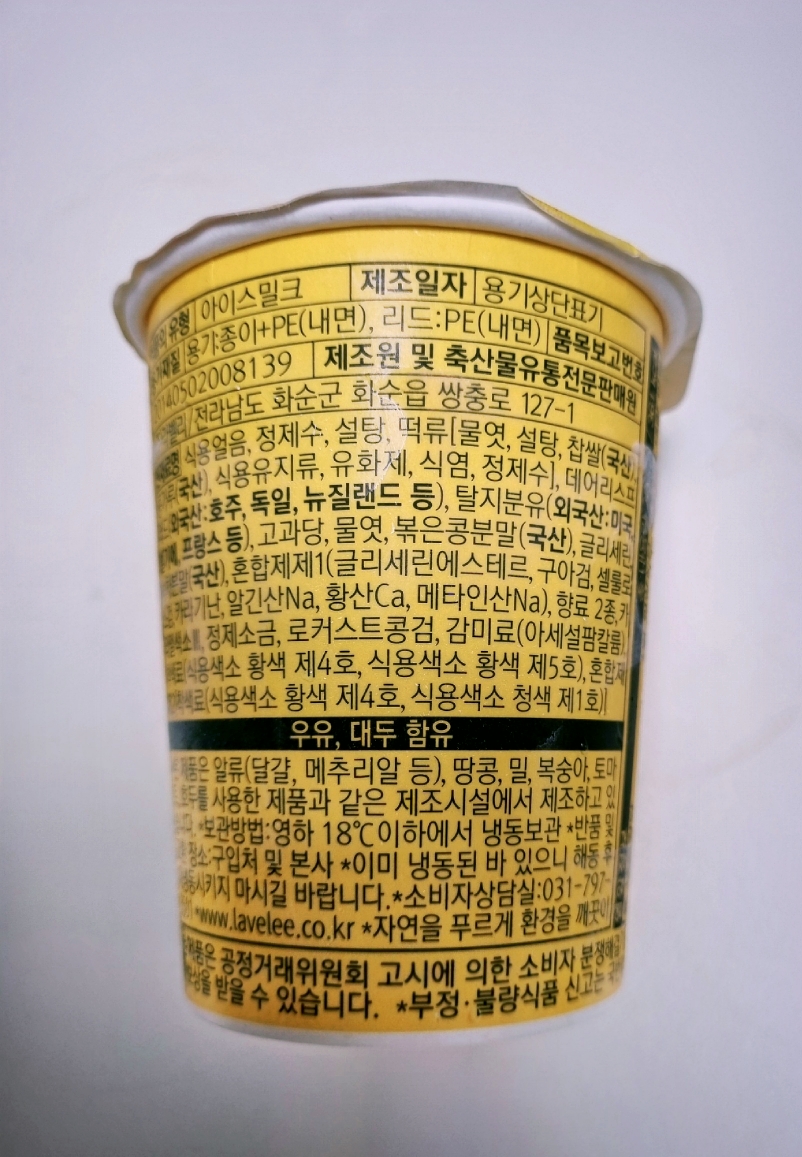 얼음, 정제수, 설탕, 떡, 유화제, 감미료 등 잘 모르는 재료들도 이것저것 많이 들어갔네요.