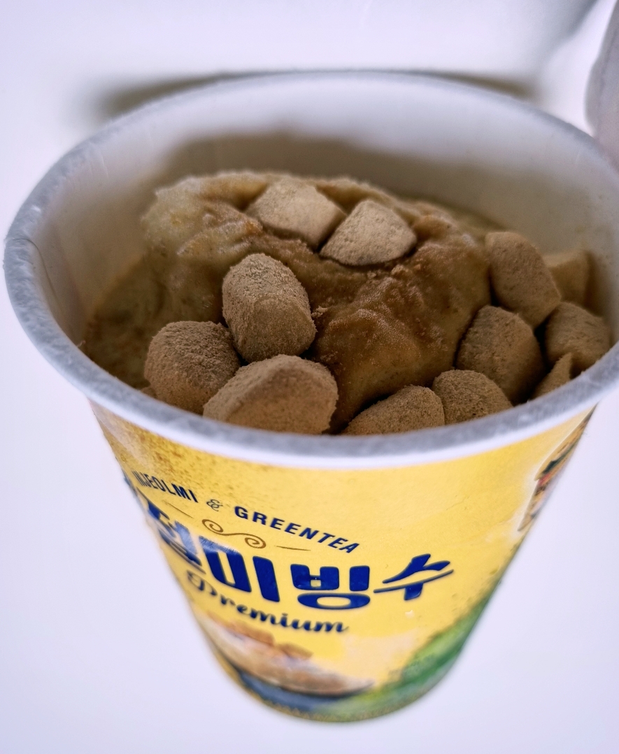 얼음 입자는 거칠고 인절미 맛은 싱거워요.