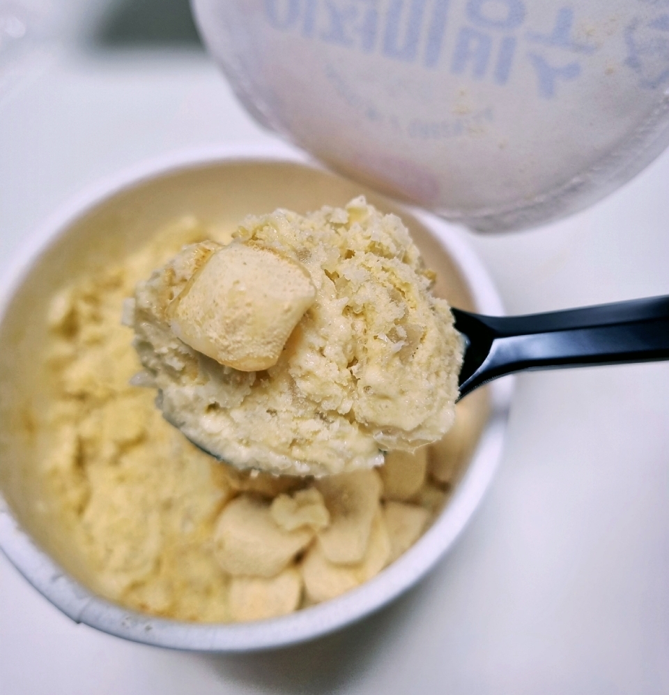 살짝 녹을 때까지 기다렸다가 한 숟가락 퍼 먹어 봤어요.