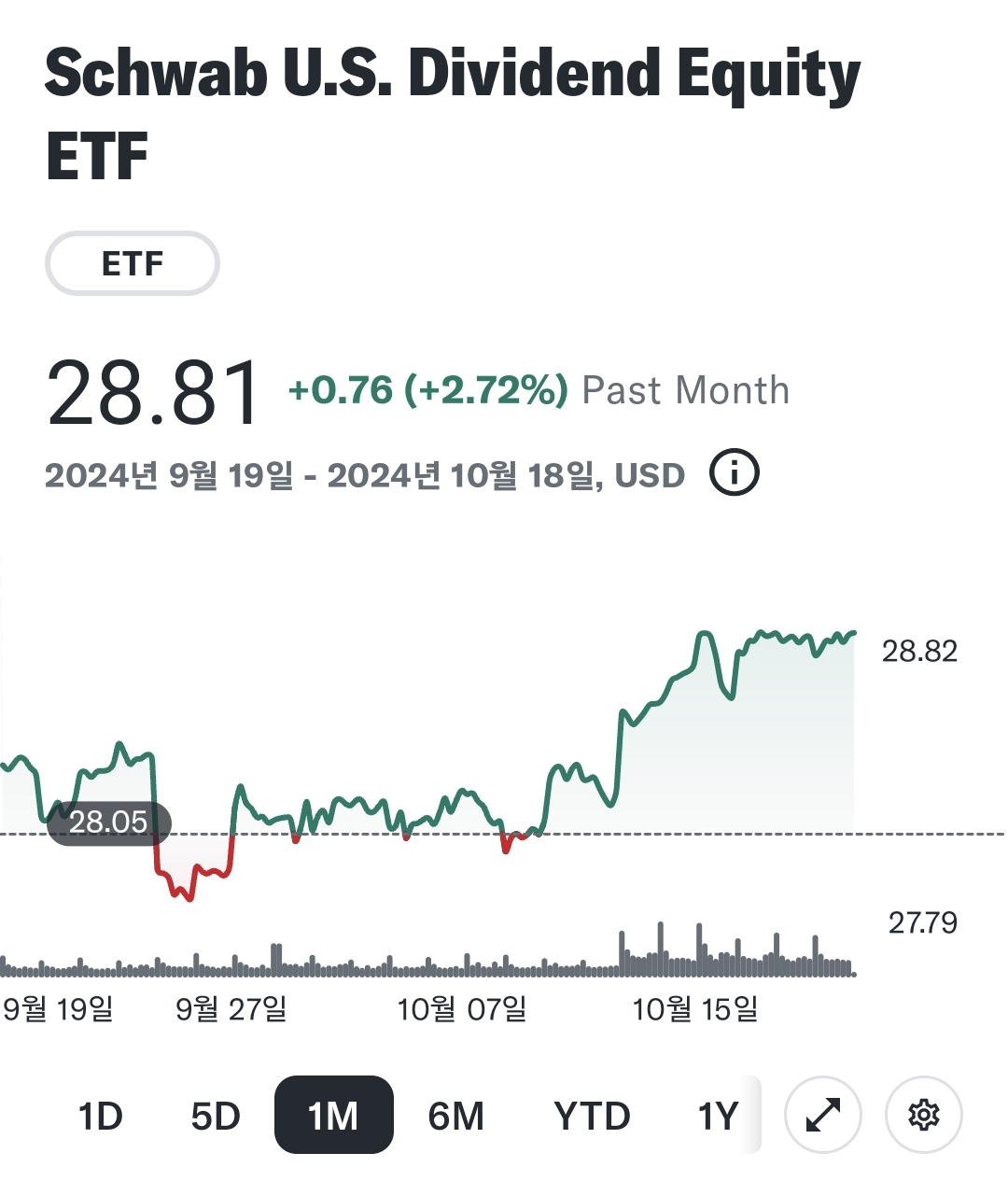 배당 안정성: SCHD는 주로 배당을 안정적으로 지급하는 기업에 투자하기 때문에 꾸준한 수익을 추구하는 투자자에게 적합합니다.