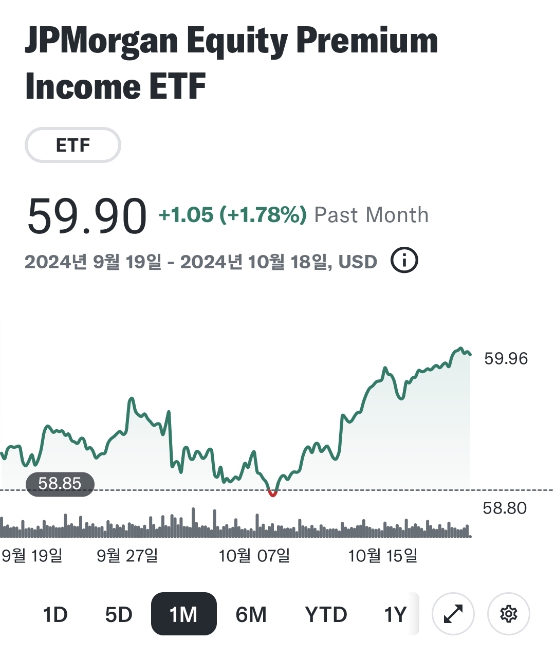 높은 배당 수익률: JEPI의 가장 큰 강점은 높은 배당률입니다. 8%~12%에 달하는 높은 배당 수익률을 제공합니다.