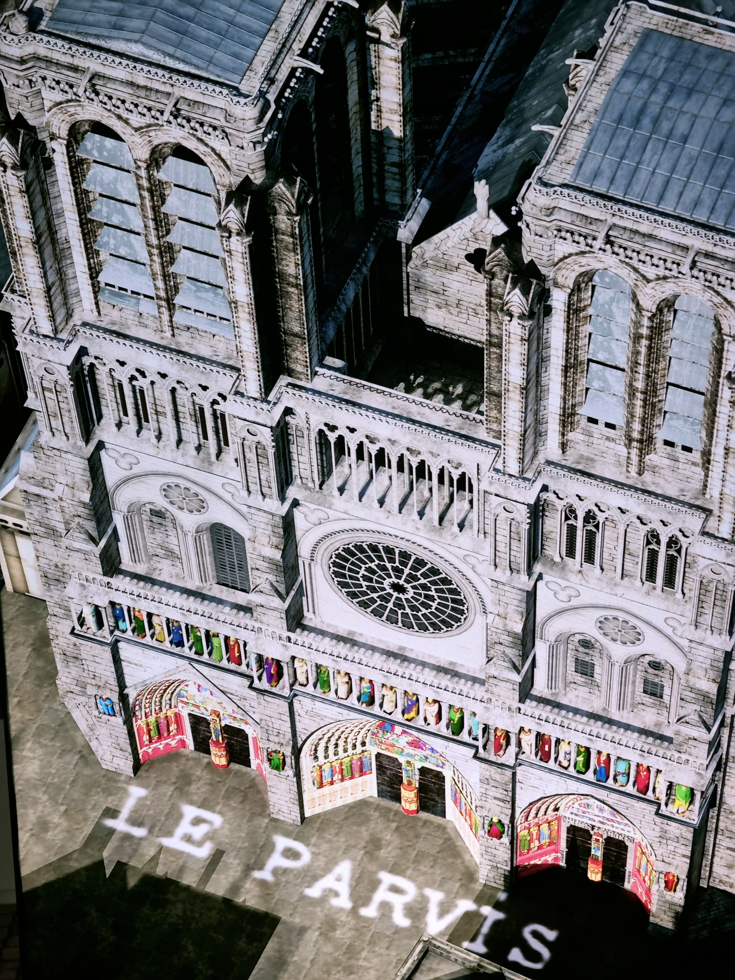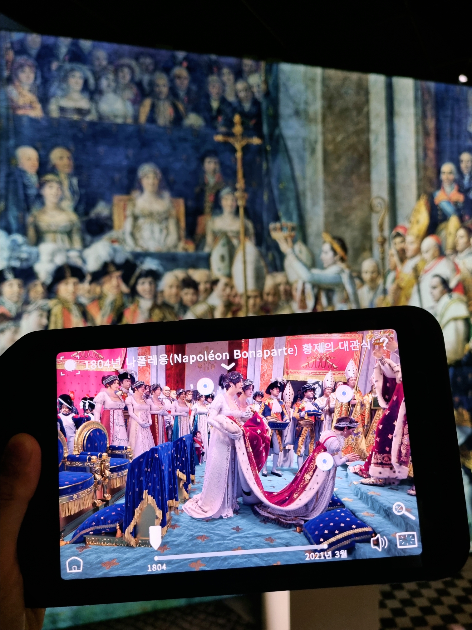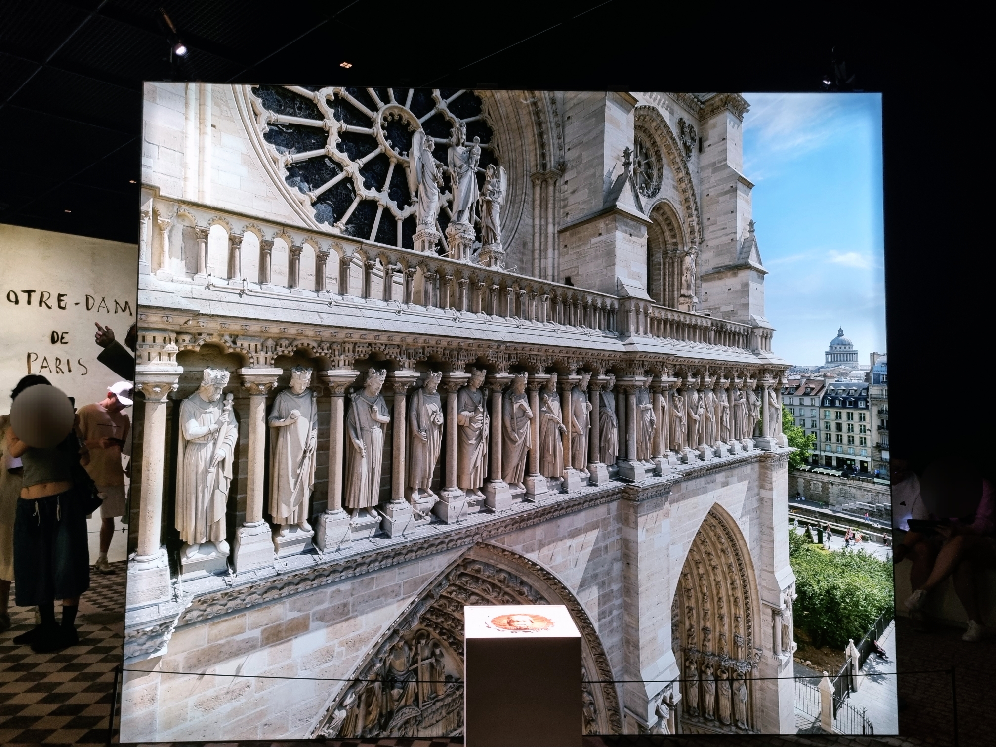 2019년 화재로 복구 중인 노트르담 대성당에 대한 주제로 1163년 착공부터 지금까지 복원 과정을 영상과 사진을 통해 증강현실로 구현해 낸 전시예요.