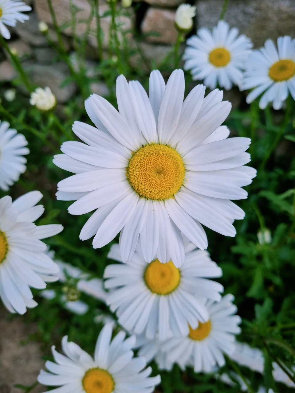 노란색 중앙을 둘러싼 작은 흰색 꽃잎이 특징인 전형적인 데이지라고 할 수 있어요.