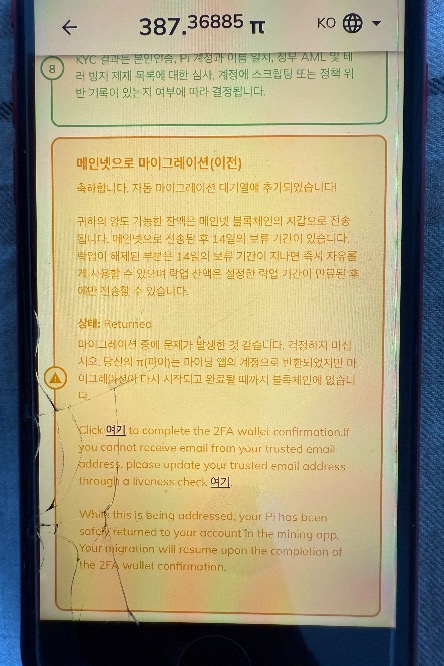 마이그레이션이 완료되어 있던 파이코인 수량이